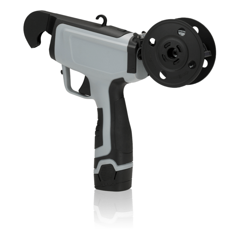 De ergonomische handgreep zorgt voor een comfortabele en veilige grip. De spoel is eenvoudig te vervangen en dankzij het speciale magnetische systeem kan de draadspanning precies worden geregeld. Bovendien beschikt de KV5 over een praktisch display dat zowel het batterijniveau als het aantal bindingen weergeeft.
