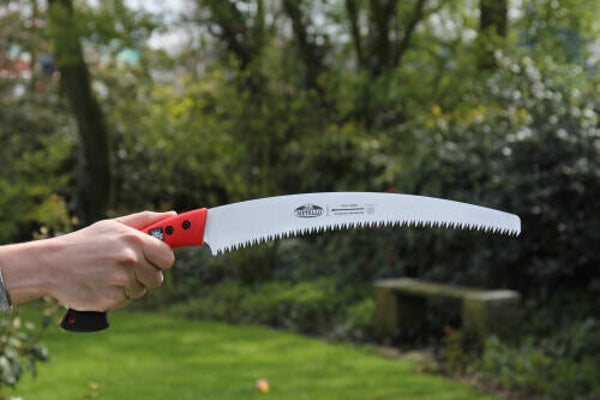 Snoeizaag met gebogen zaagblad en gratis holster. Als de zaag even niet gebruikt wordt, kan hij veilig in de holster worden opgeborgen. De tanden van deze zaag zijn impuls gehard en 3-voudig geslepen wat zorgt voor een vlijmscherpe zaagsnede en zaagtanden die extra lang meegaan. Een onderhoudsarme zaag die perfect is om de dikkere takken mee te zagen. De aanbevolen zaagdikte is circa 125 mm.